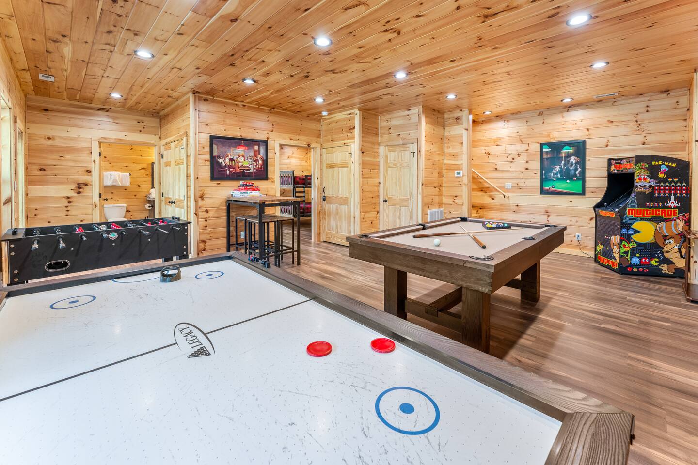 Downstairs, unleash your competitive side in the game room ๐ฎ with pool, air hockey, foosball, and a multicade arcade. When the sun sets, step out to the deck for a soak in the hot tub ๐ under the stars โจ or gather around the firepit ๐ฅ for sโmores & stories.