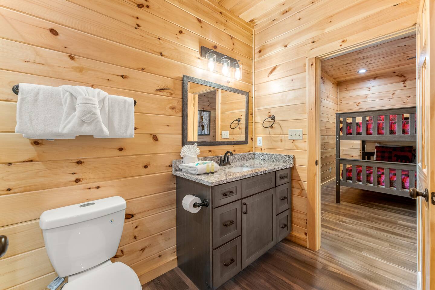 โ Lower Level: Queen-over-Queen Bunk + Ensuite (Stand-Up Shower) ๐